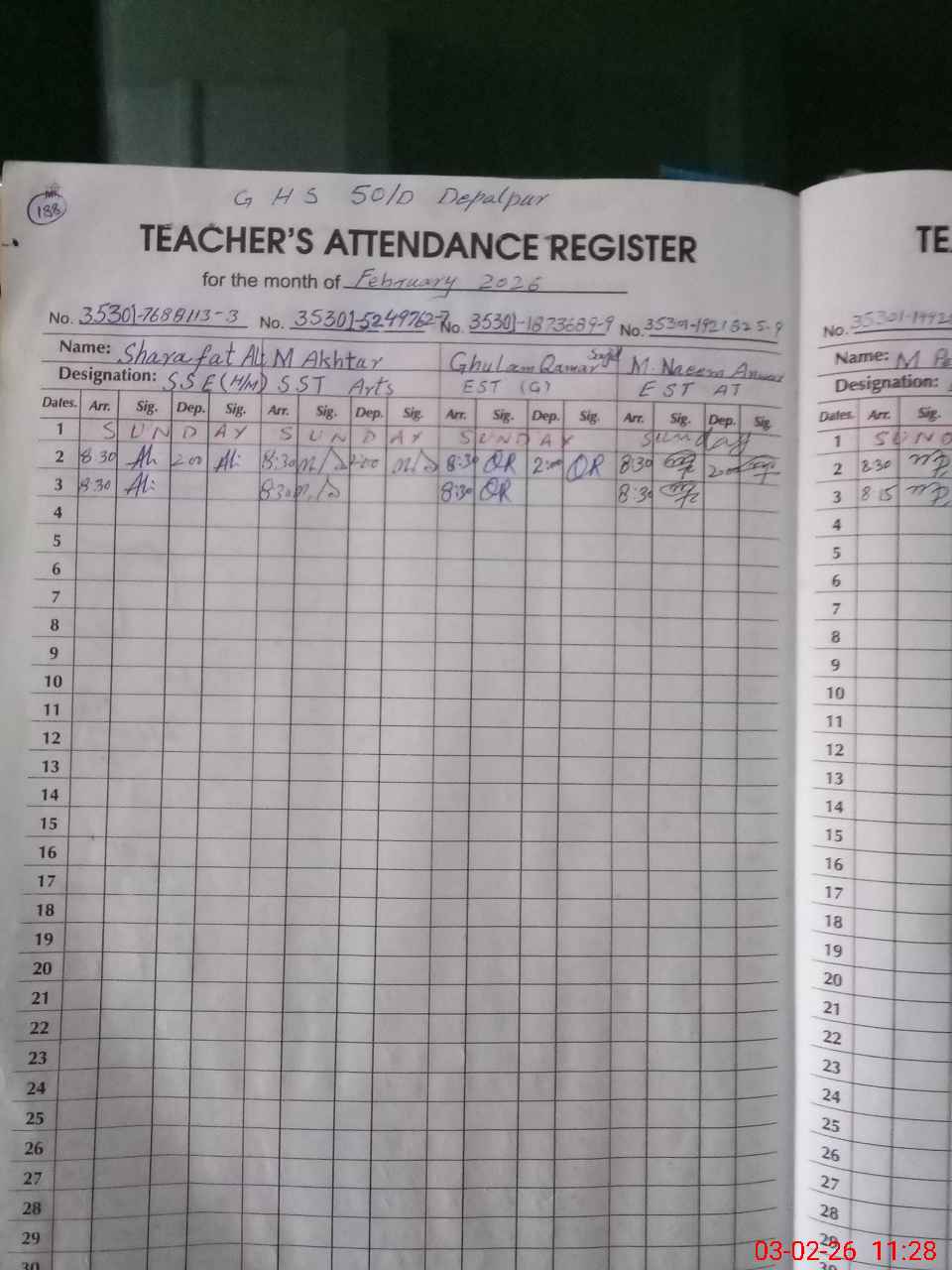 | Monitoring Date: 03-02-2026 | Start Time: 03-02-2026 11:27 AM | End Time: 03-02-2026 12:08 PM | Name of MEA: MU**** AK**** TA**** | |