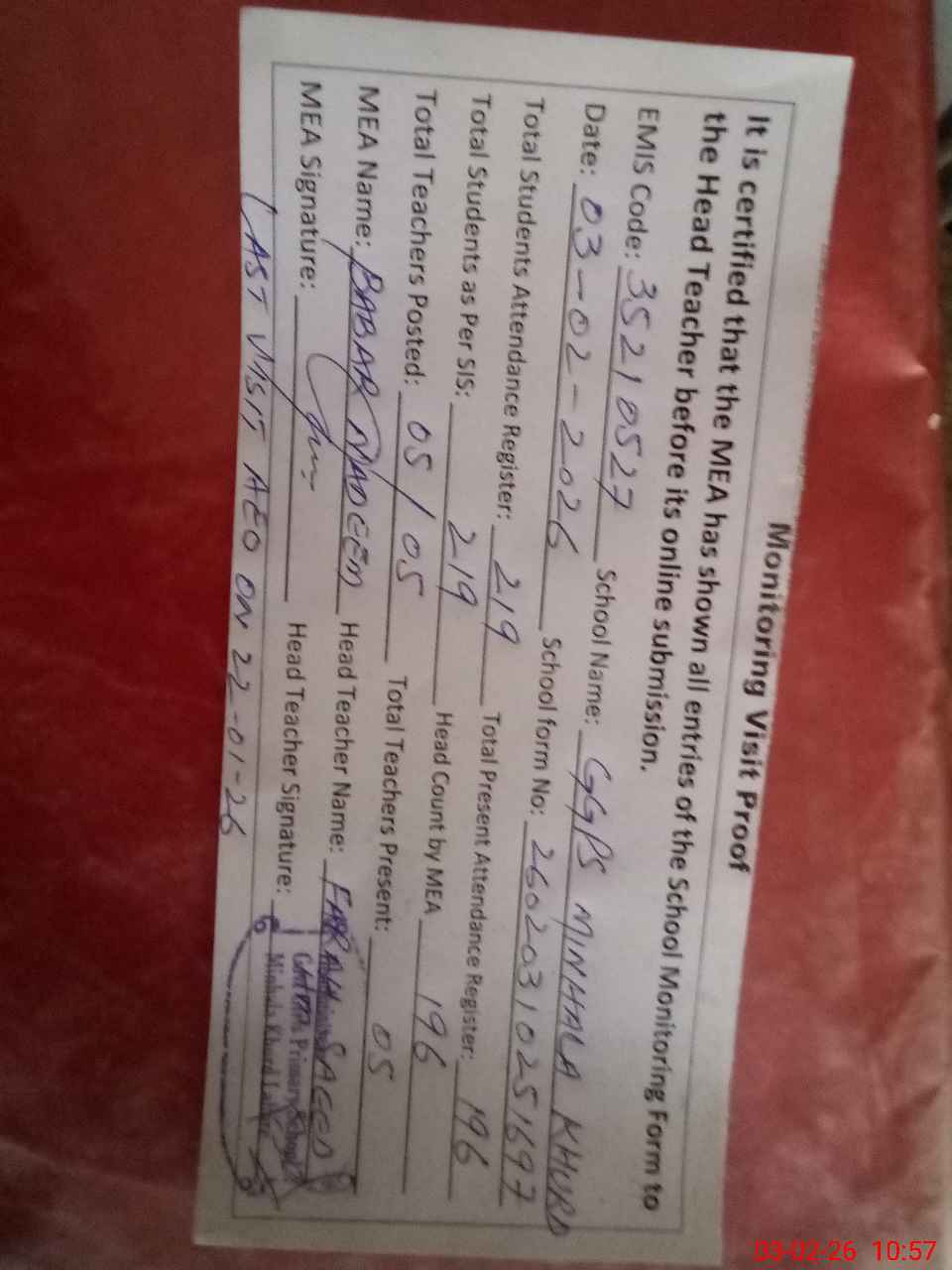 | EMIS Code: 35210527 | Name of School: GGPS MINHALA KHURD | |||