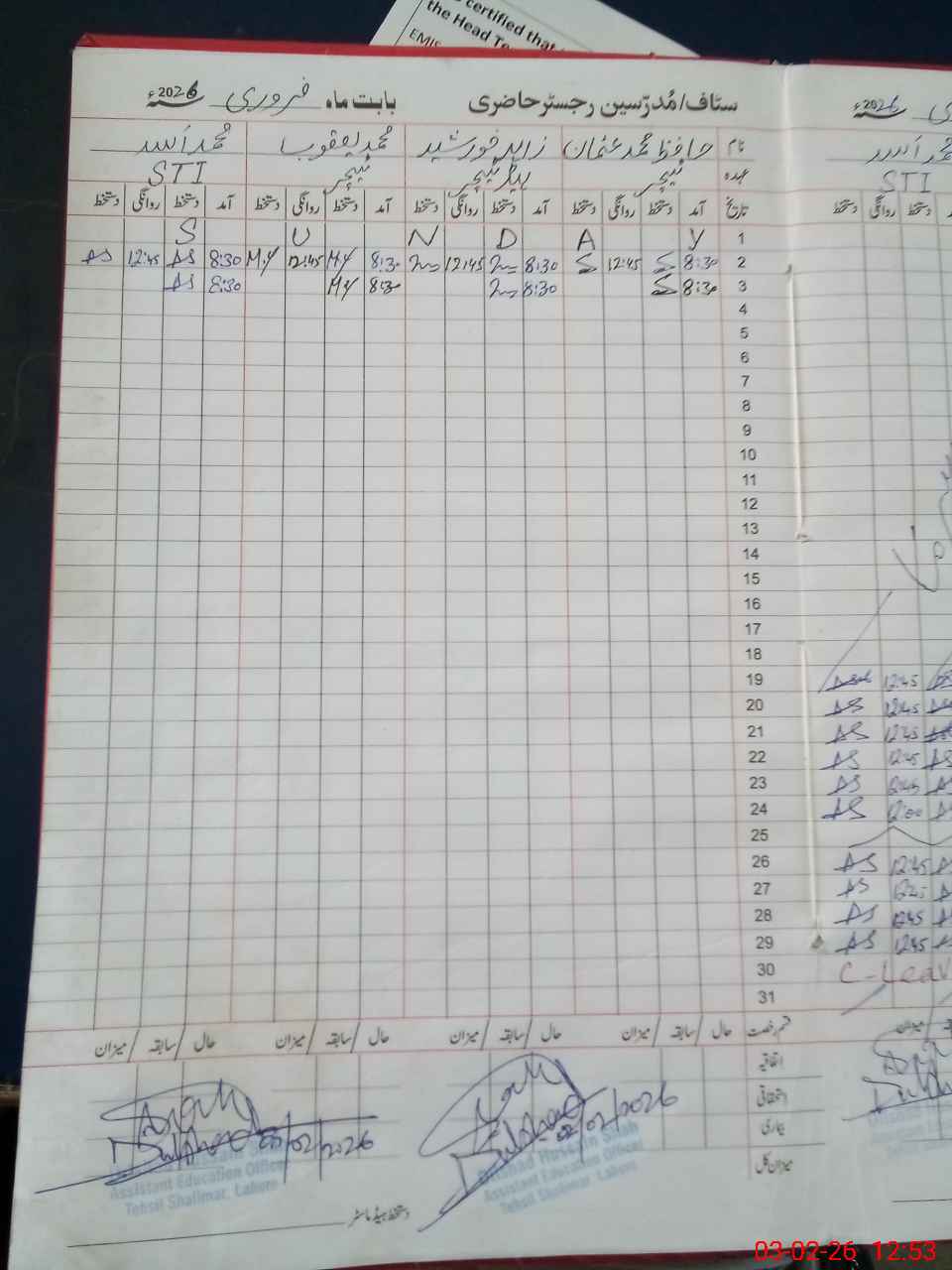| Name: Za**** Kh**** Designation: (School Headmaster's/Headmistress's) HEADMASTER Phone/Cell Number: 03**** |