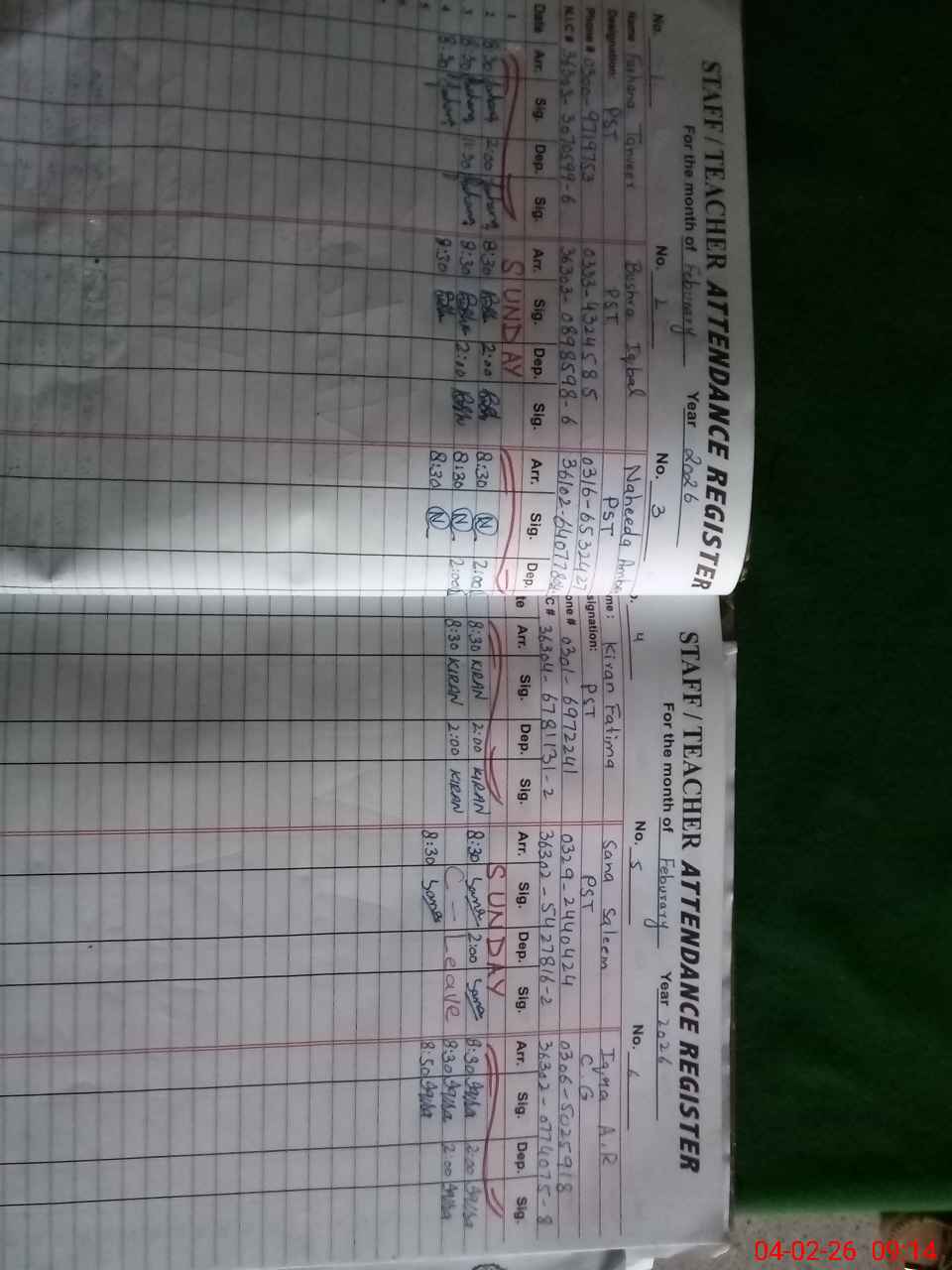 | CNIC | Full Name | Designation | R/C | Absence During Last Calender Month |