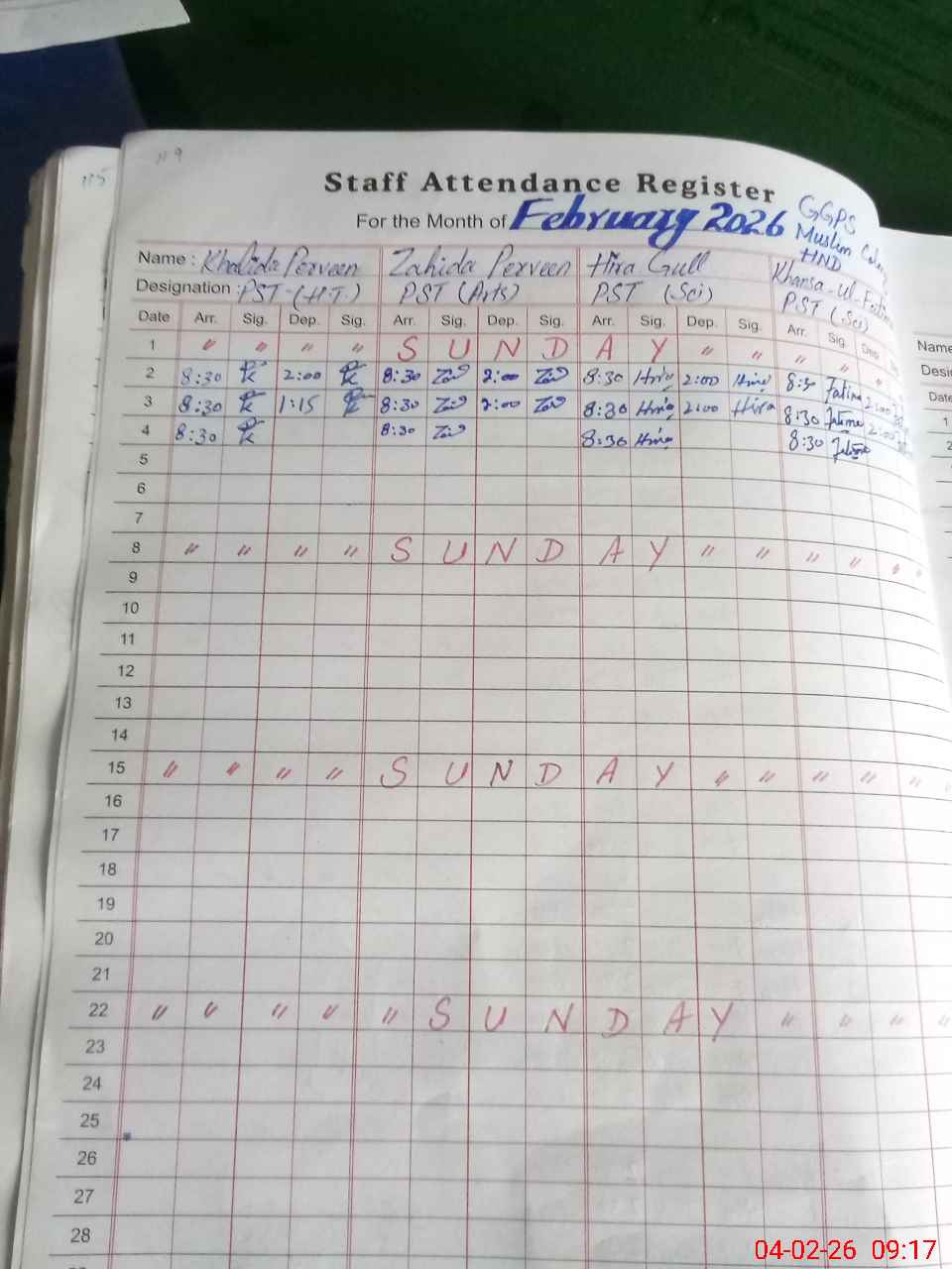 | Name: Zu**** Sh**** Designation: (School Headmaster's/Headmistress's) PST Phone/Cell Number: 03**** |