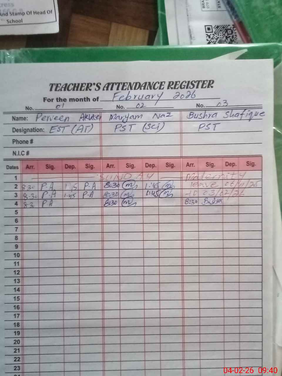 | Name: PA**** AK**** Designation: (School Headmaster's/Headmistress's) EST (A T) Phone/Cell Number: 03**** |