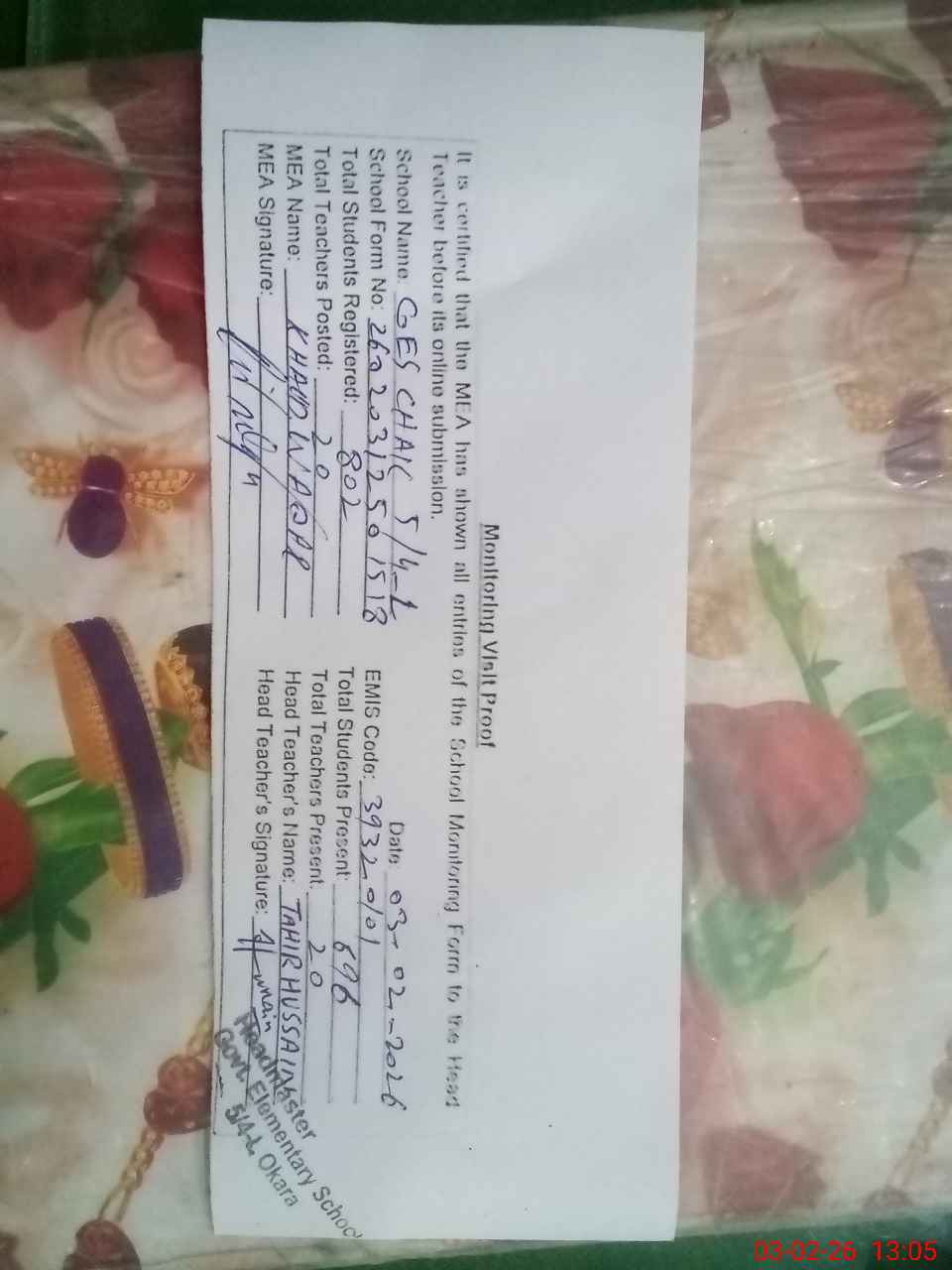 | EMIS Code: 39320101 | Name of School: GES CHAK 5/4-L | |||