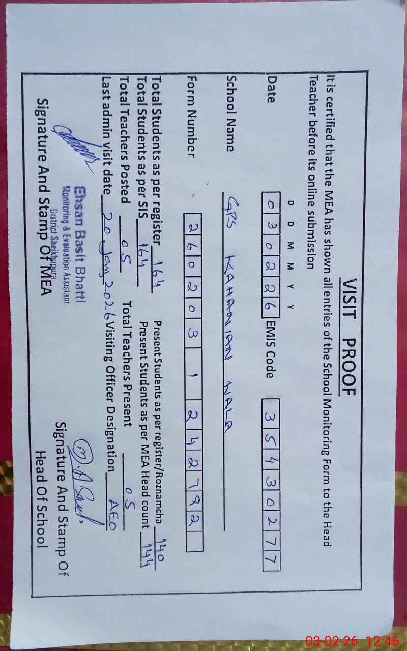 | EMIS Code: 35430277 | Name of School: GPS KAHANIAN WALA | |||