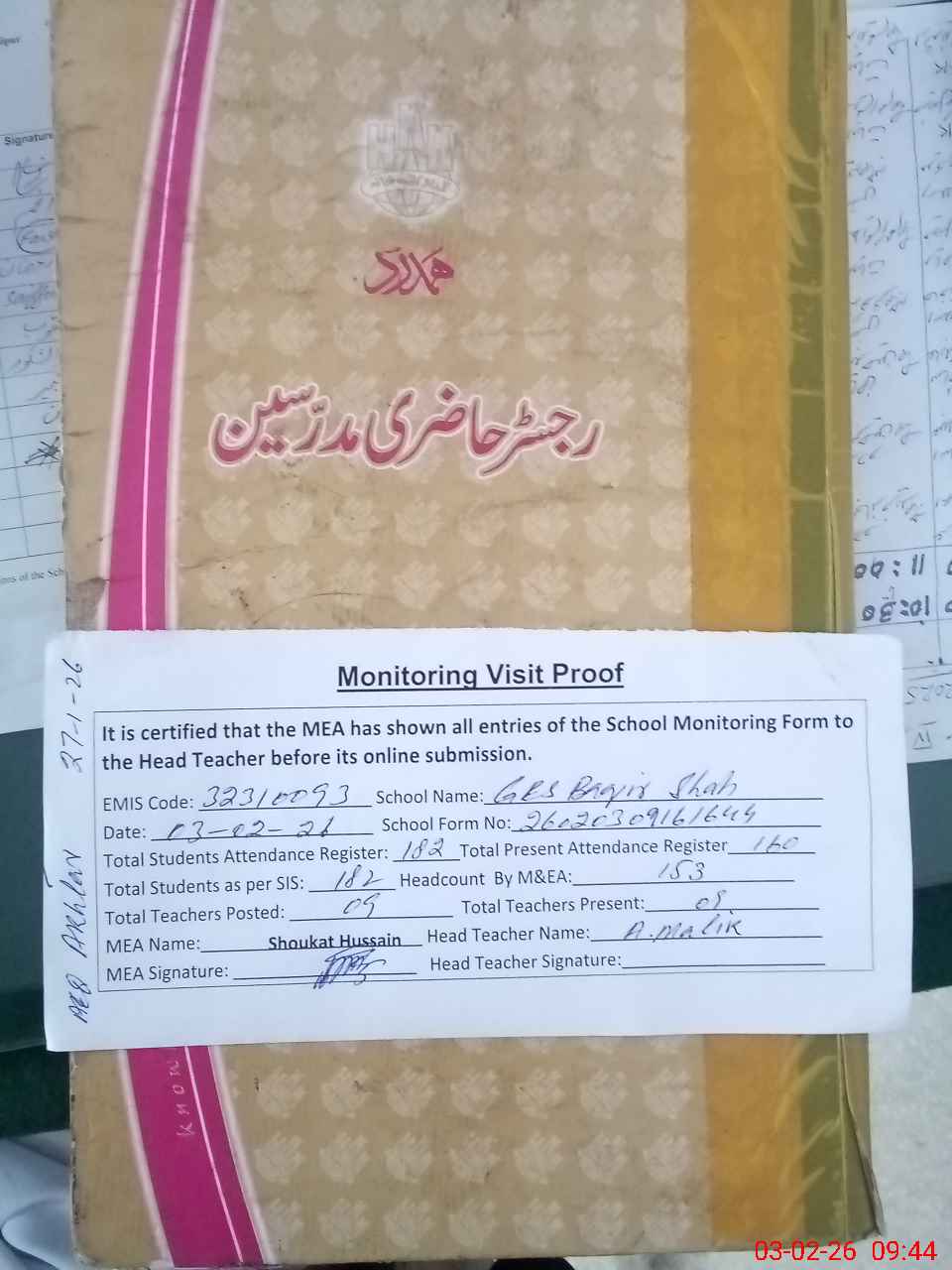 | EMIS Code: 32310093 | Name of School: GES BAQIR SHAH SHUMALI | |||