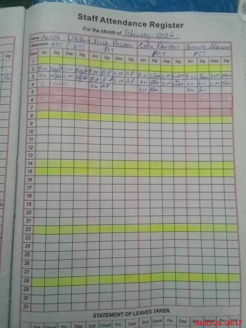 | 35**** | Go**** Sh**** | PST Science/Maths | Regular | 0 | 0 | 0 | 0 | 0 | 0 | 0 | 0 | 0 | Absent (Un-Authorized) |