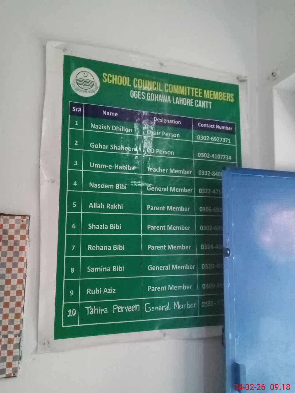 | Name: Na**** Dh**** Designation: (School Headmaster's/Headmistress's) SST Phone/Cell Number: 03**** |