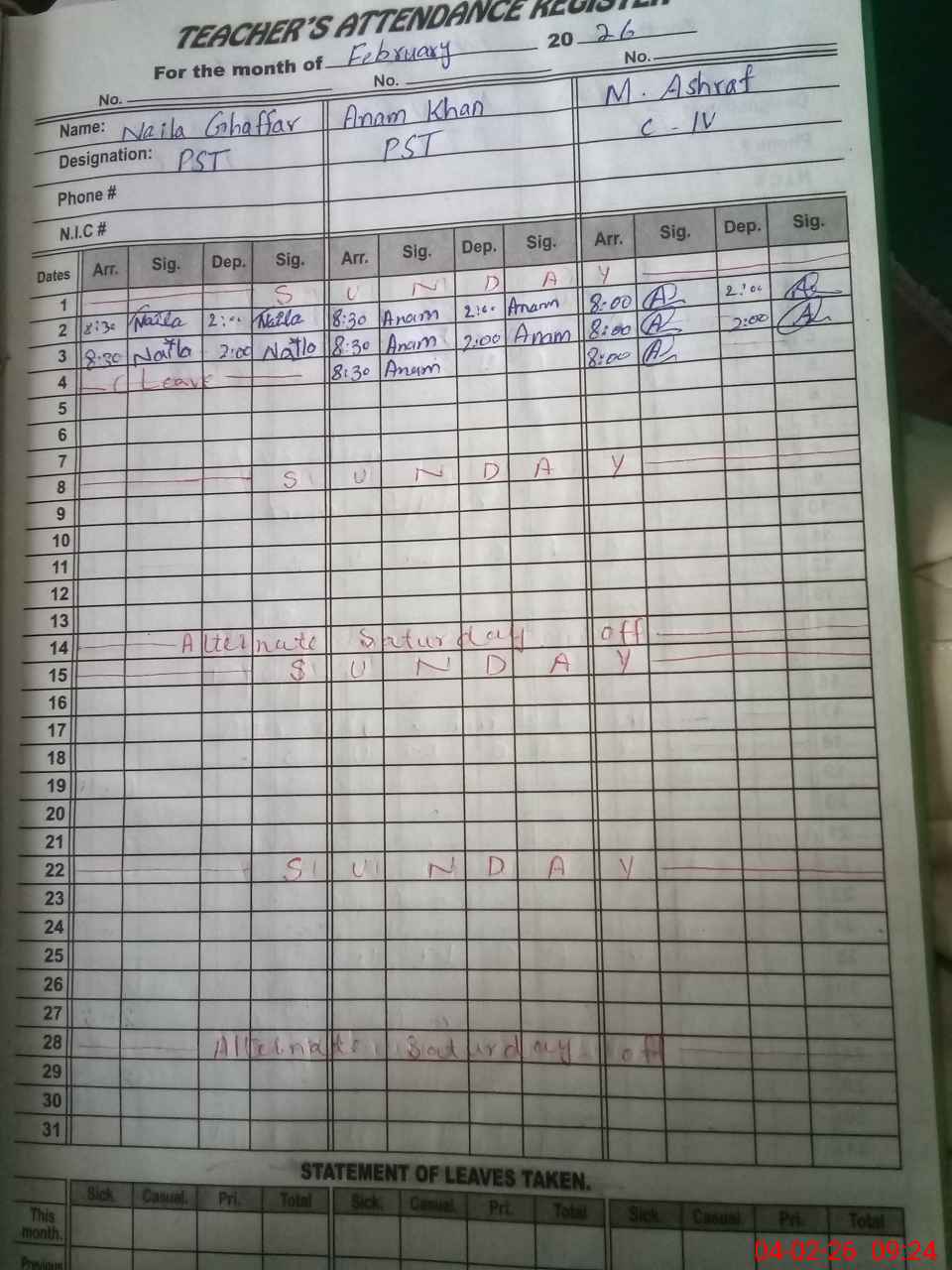 | 38**** | Na**** Gh**** | PST Science/Maths | Regular | 0 | 0 | 0 | 0 | 0 | 0 | 0 | 0 | 0 | Casual |