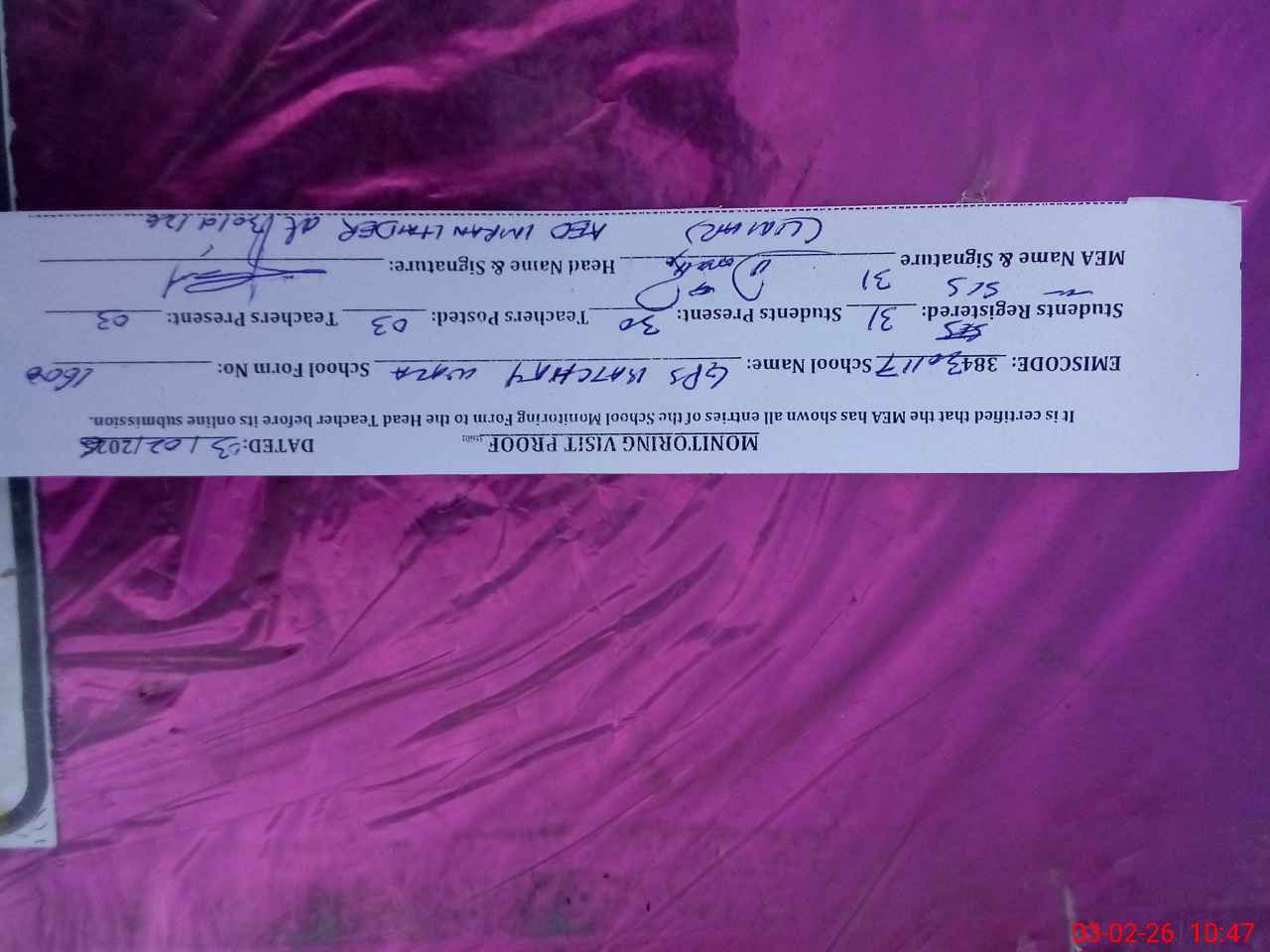 | EMIS Code: 38430117 | Name of School: GPS KATCHAY WALA | |||