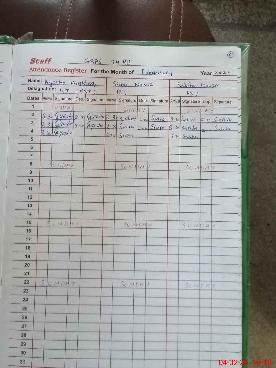 | Leave | Duty | Absent | Maternity | Medical | Ex- Pak |