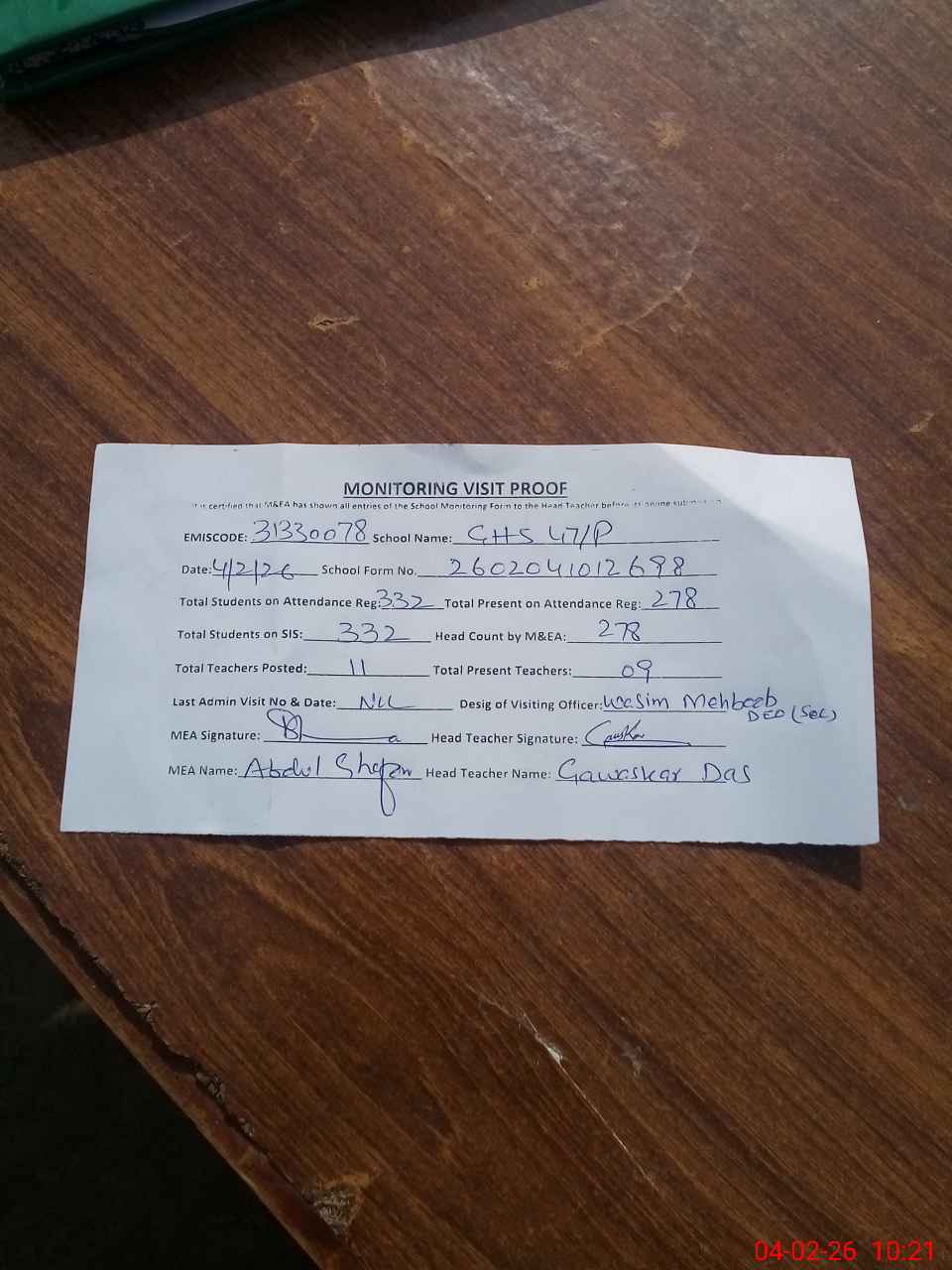 | EMIS Code: 31330078 | Name of School: GHS CHAK 47/P VIA KHAN PUR | |||