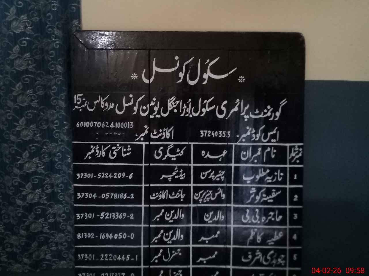 | Name: Za**** Fa**** Designation: (School Headmaster's/Headmistress's) HEADMISTRESS Phone/Cell Number: 03**** |