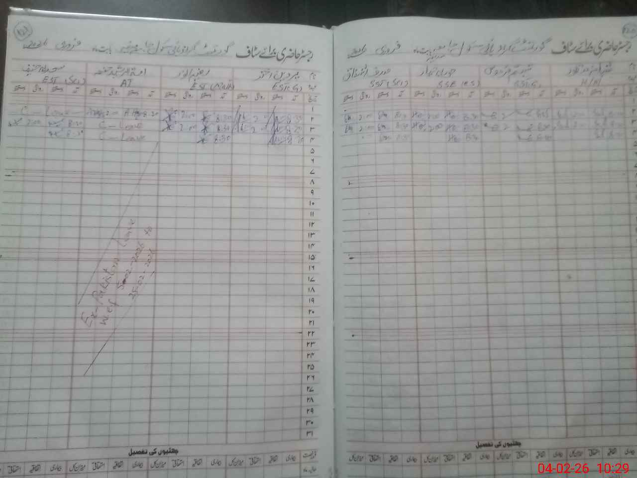 | CNIC | Full Name | Designation | R/C | Absence During Last Calender Month |
