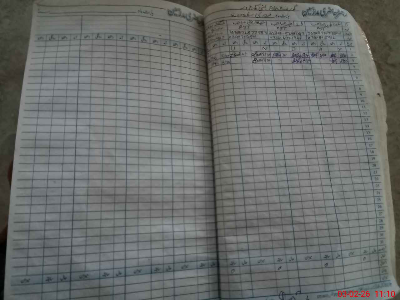 | CNIC | Full Name | Designation | R/C | Absence During Last Calender Month |