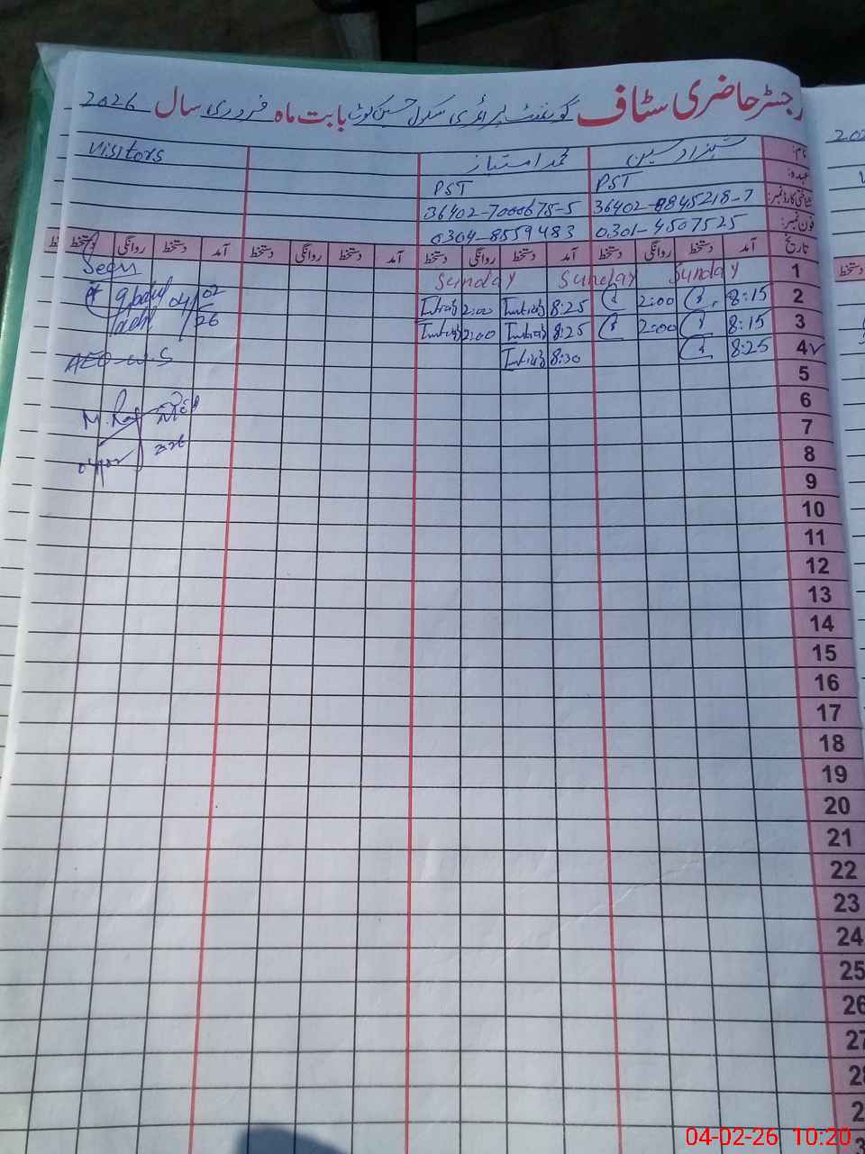 | Name: Sh**** Hu**** Designation: (School Headmaster's/Headmistress's) PST Phone/Cell Number: 03**** |
