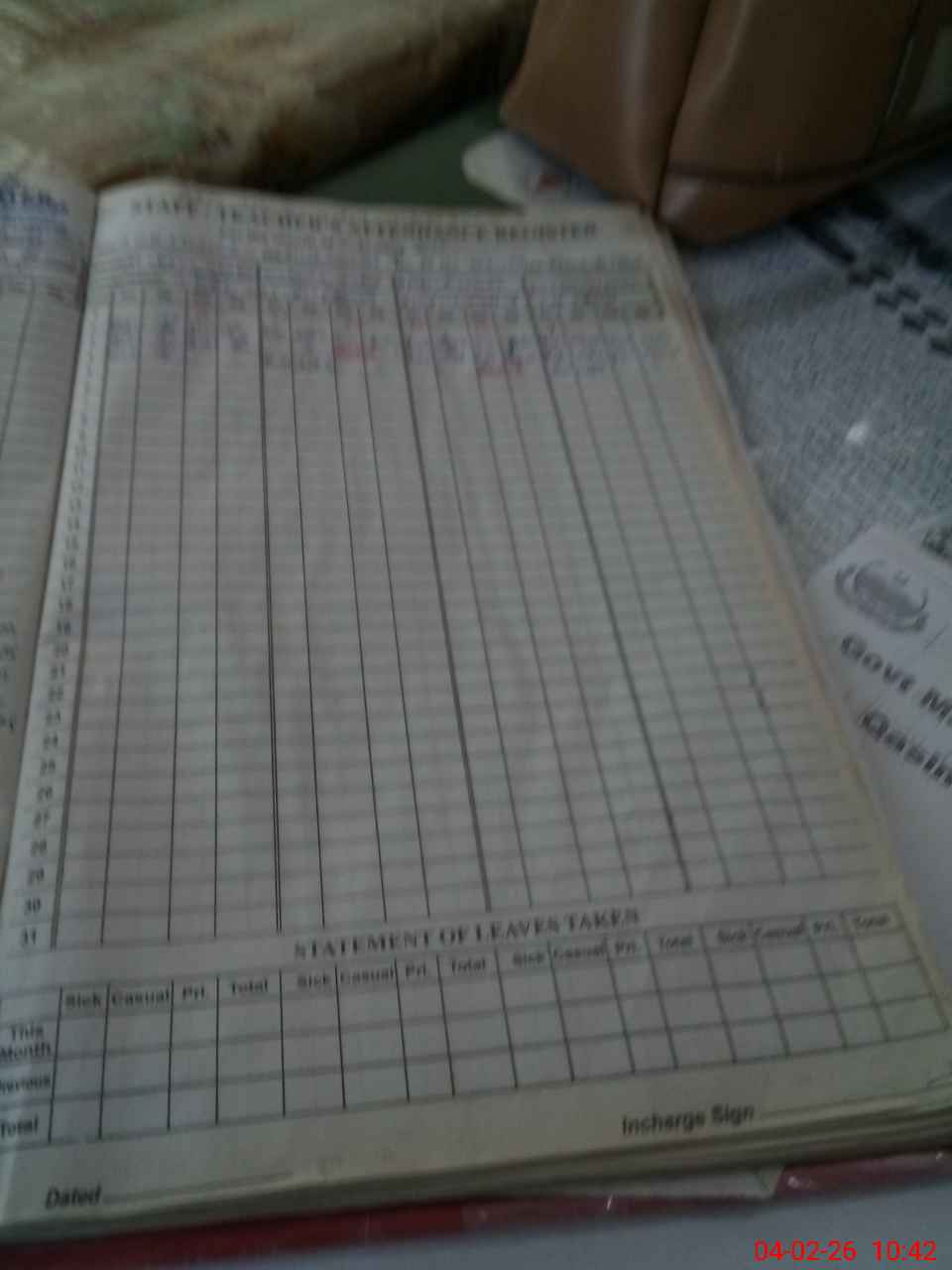 | Leave | Duty | Absent | Maternity | Medical | Ex- Pak |