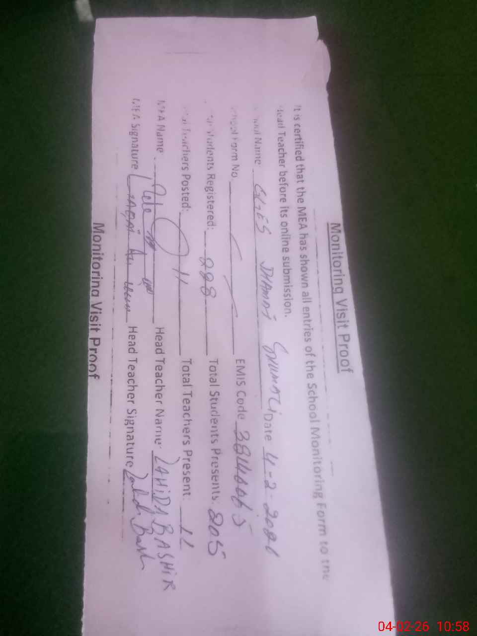 | EMIS Code: 38140065 | Name of School: GGES JHAMAT SHUMALI | |||
