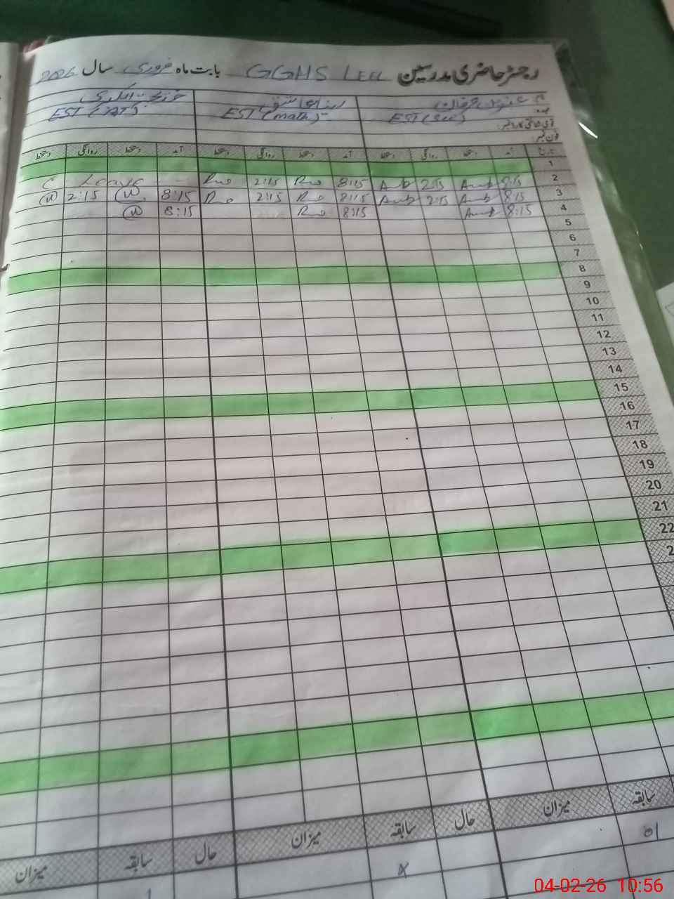 | Leave | Duty | Absent | Maternity | Medical | Ex- Pak |