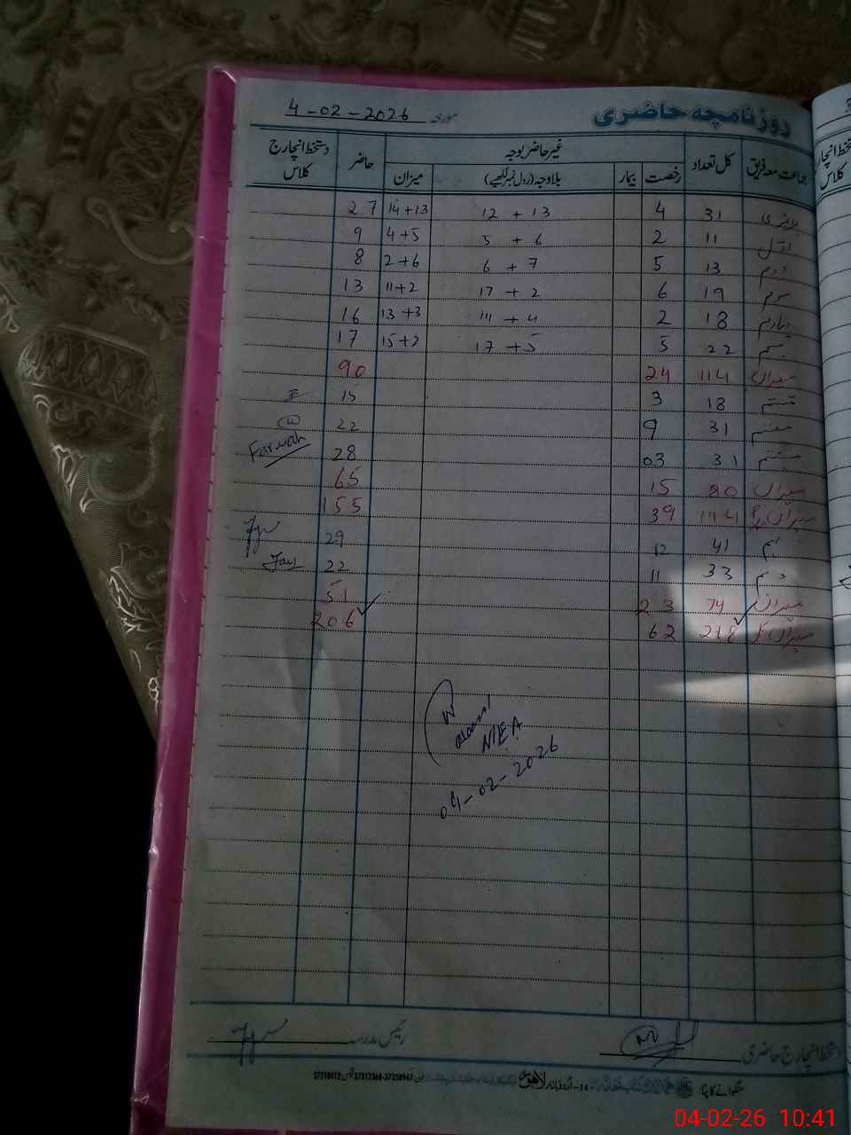 | Attendance Register | Head Teacher | MEA with School | Visit Proof |