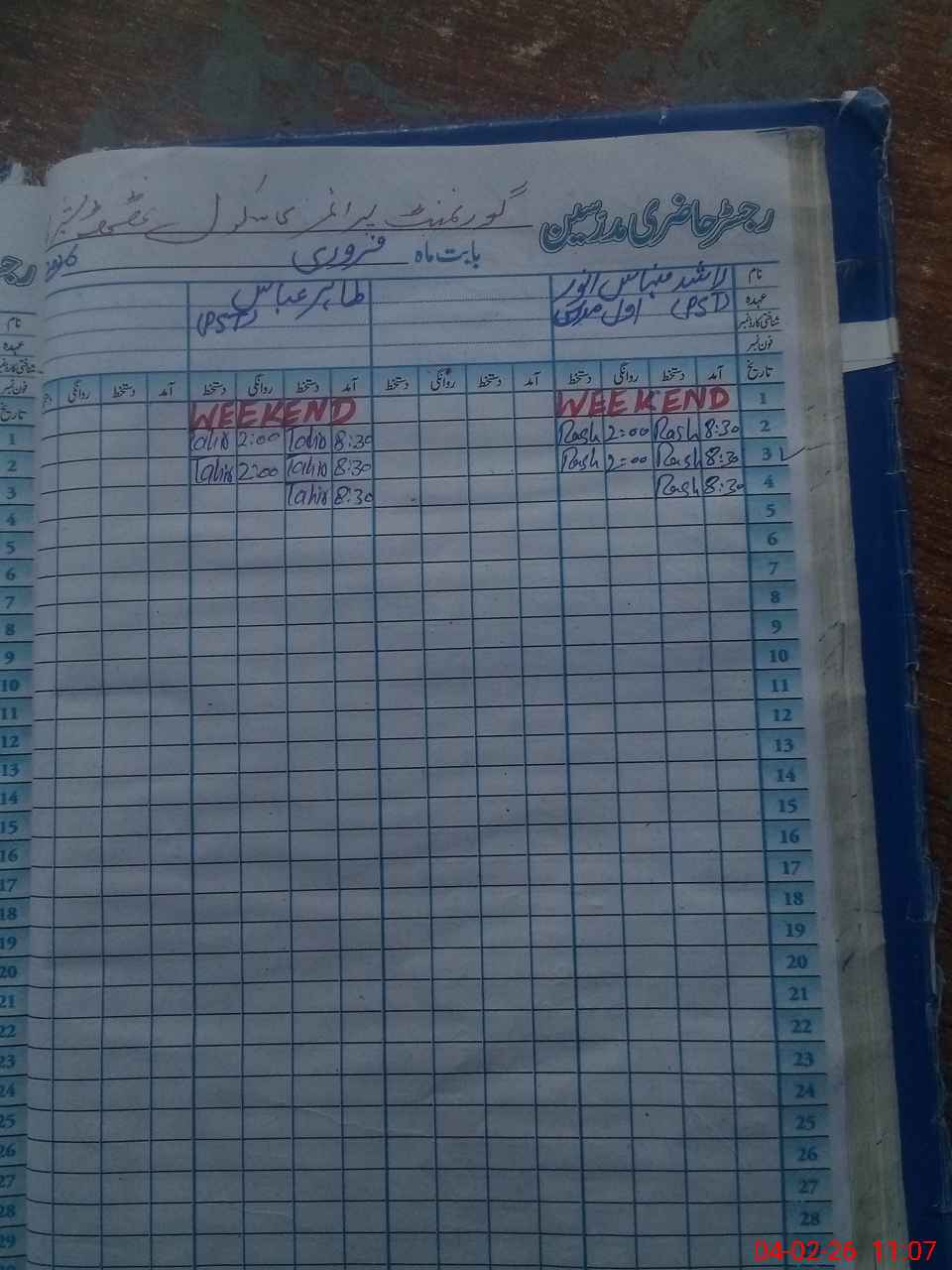| CNIC | Full Name | Designation | R/C | Absence During Last Calender Month |