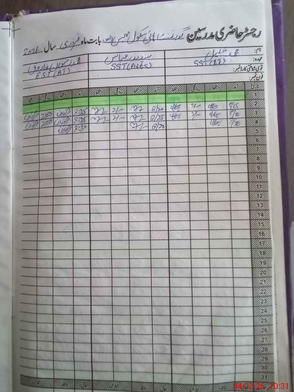 | Name: Mu**** Kh**** Designation: (School Headmaster's/Headmistress's) SST Phone/Cell Number: 03**** |