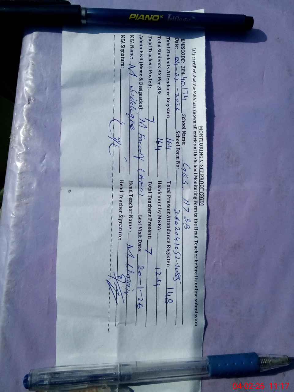 | EMIS Code: 38440174 | Name of School: GES CHAK NO.117 SB | |||