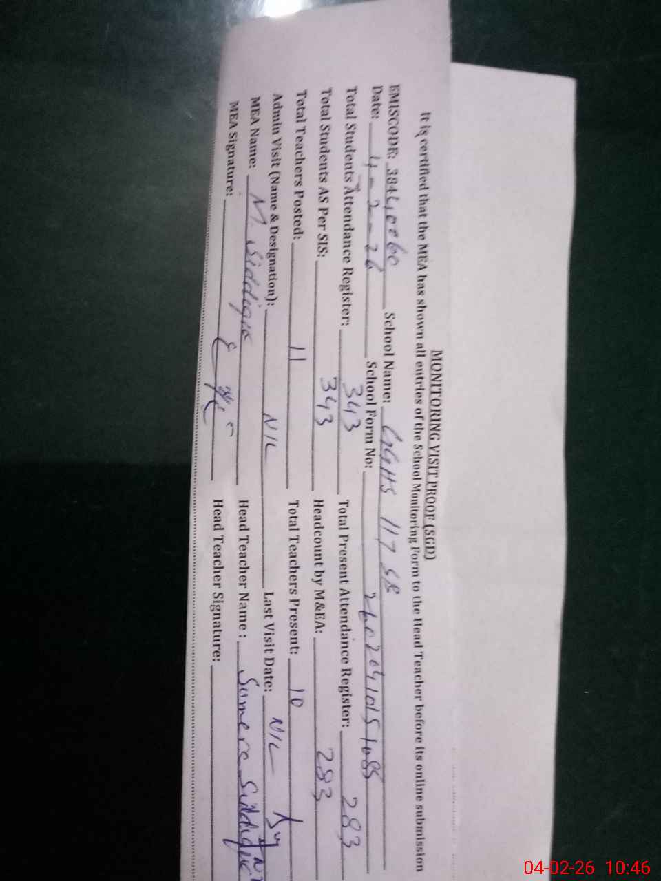 | Certified that this School was Inspected by the Undersigned MEA/DMO Today and the Information Stated Above is as Per Record. | |||||