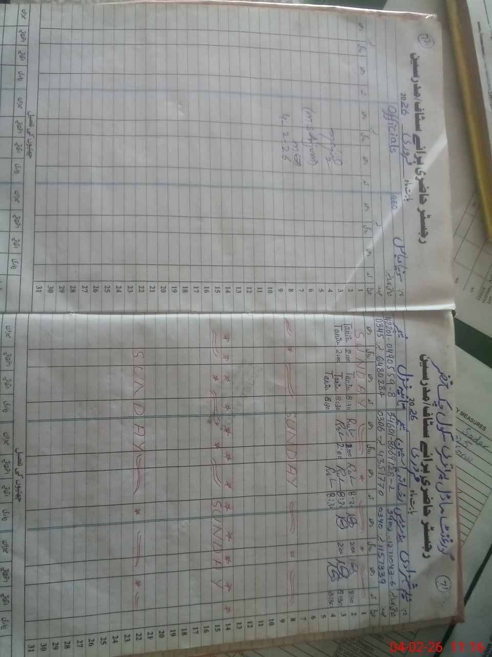 | CNIC | Full Name | Designation | R/C | Absence During Last Calender Month |