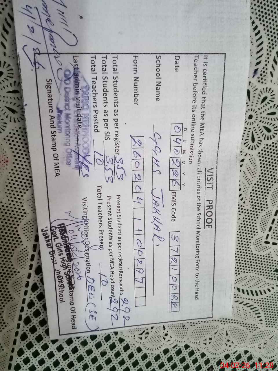 | EMIS Code: 37210082 | Name of School: GGHS JAKKAR | |||
