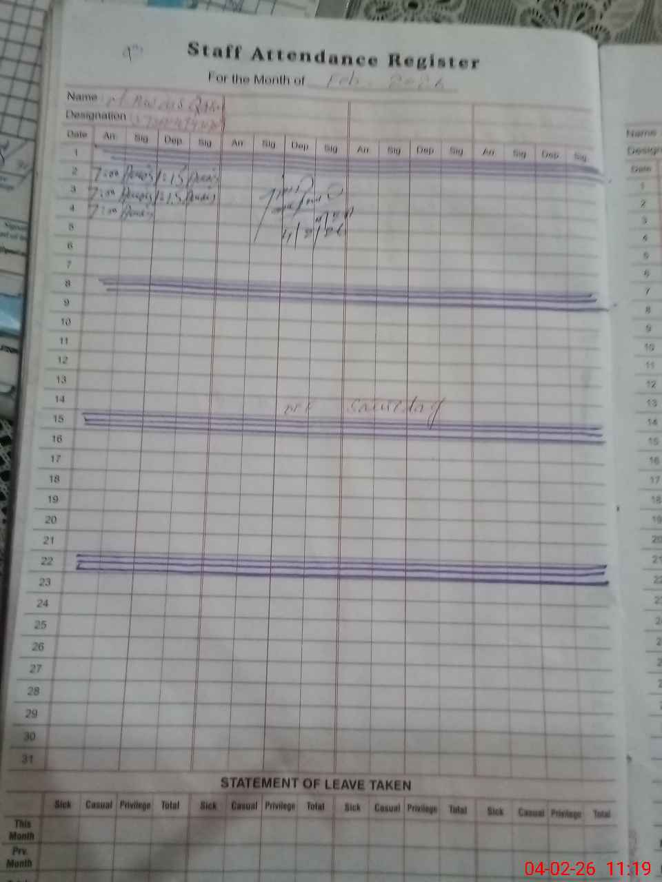 | Leave | Duty | Absent | Maternity | Medical | Ex- Pak |