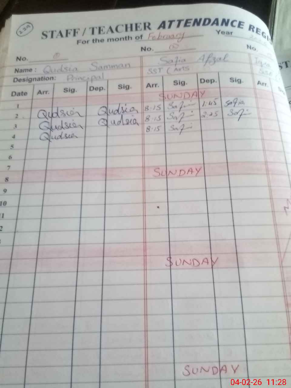 | Name: Qu**** Sa**** Designation: (School Headmaster's/Headmistress's) Principal Phone/Cell Number: 03**** |