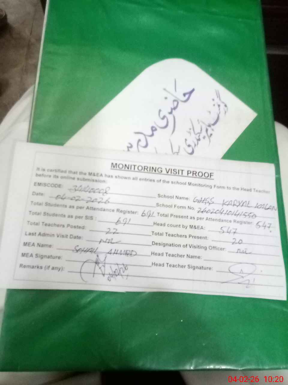 | EMIS Code: 34140008 | Name of School: GHSS KARYAL KALAN | |||