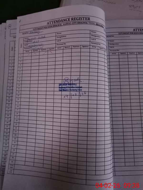 | EMIS Code: 38410495 | Name of School: GGPS HAYAT PUR NOON BHALWAL | |||