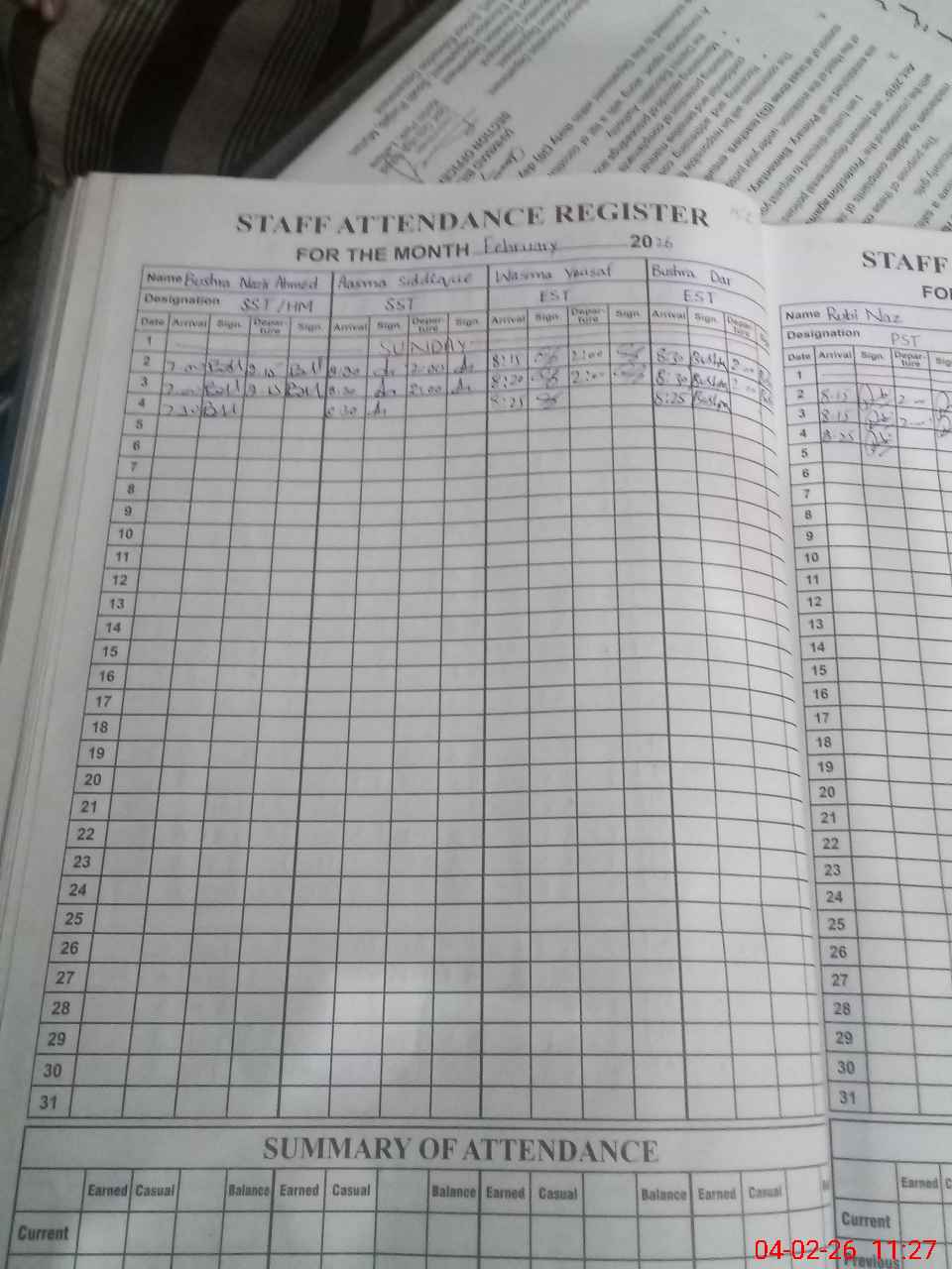 | Monitoring Date: 04-02-2026 | Start Time: 04-02-2026 10:36 AM | End Time: 04-02-2026 11:33 AM | Name of MEA: M.**** KH**** | |