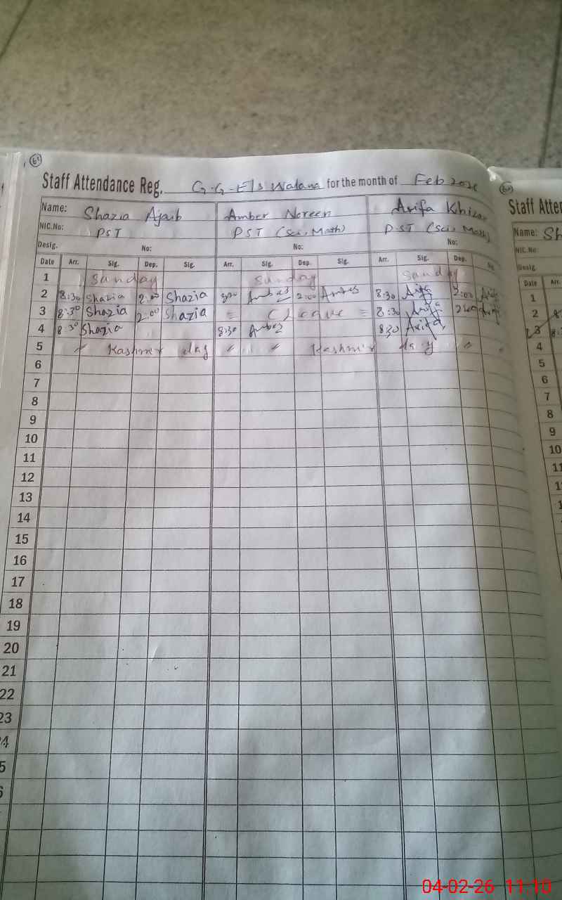 | CNIC | Full Name | Designation | R/C | Absence During Last Calender Month |