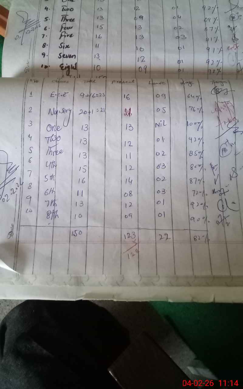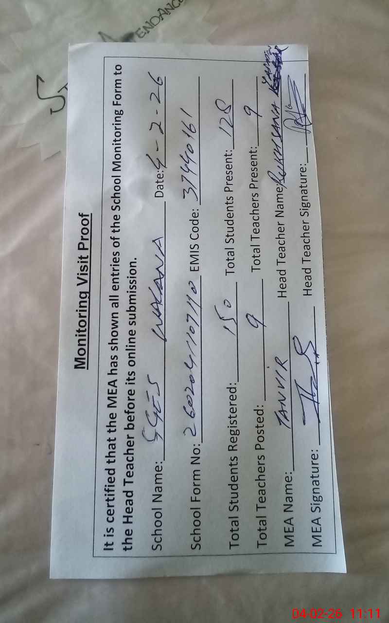 | Attendance Register | Head Teacher | MEA with School | Visit Proof |