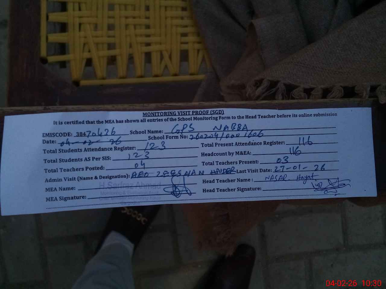 | EMIS Code: 38470436 | Name of School: GPS NABBA | |||