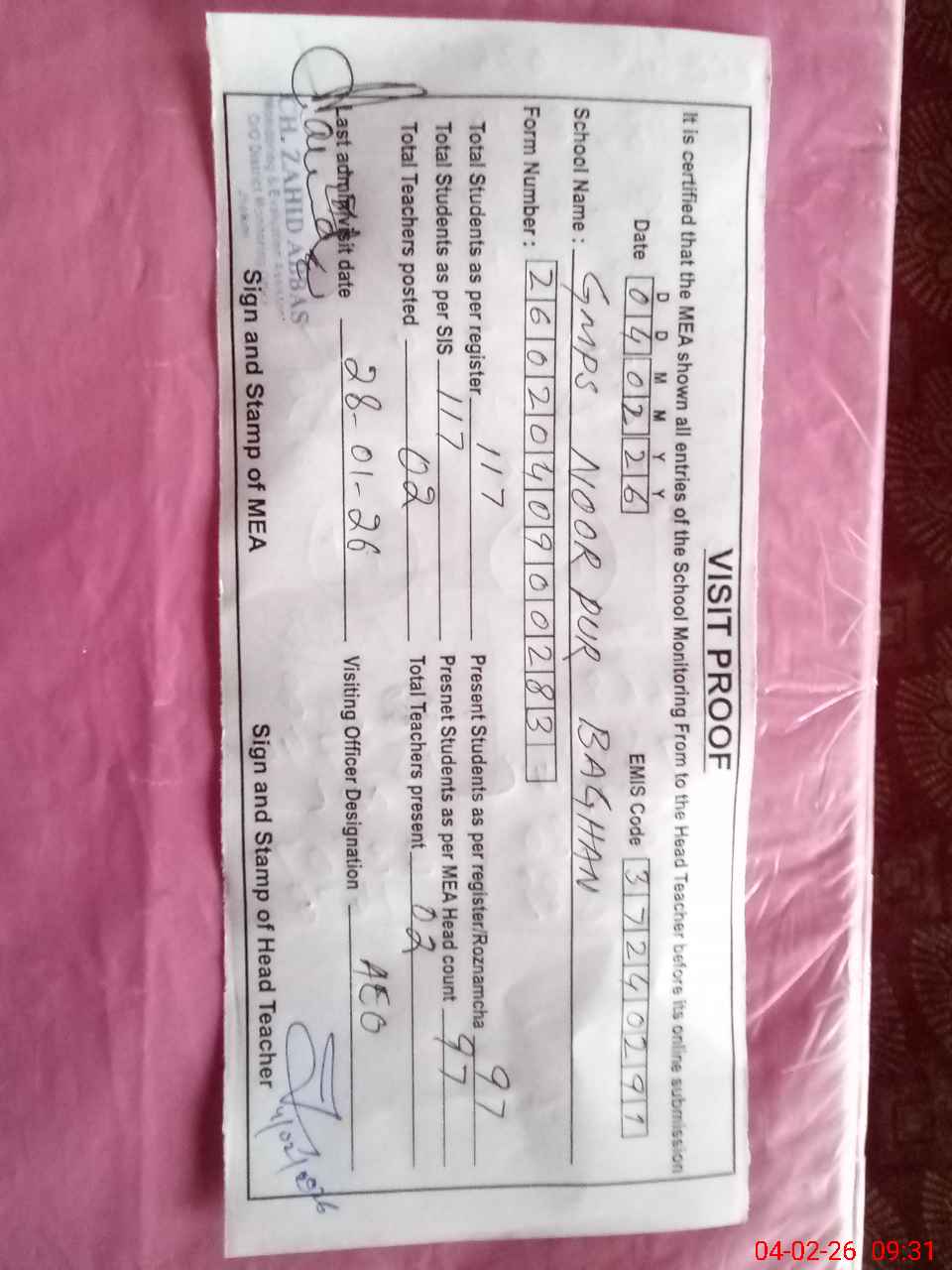 | EMIS Code: 37240291 | Name of School: GMPS NOOR PUR BAGHAN | |||