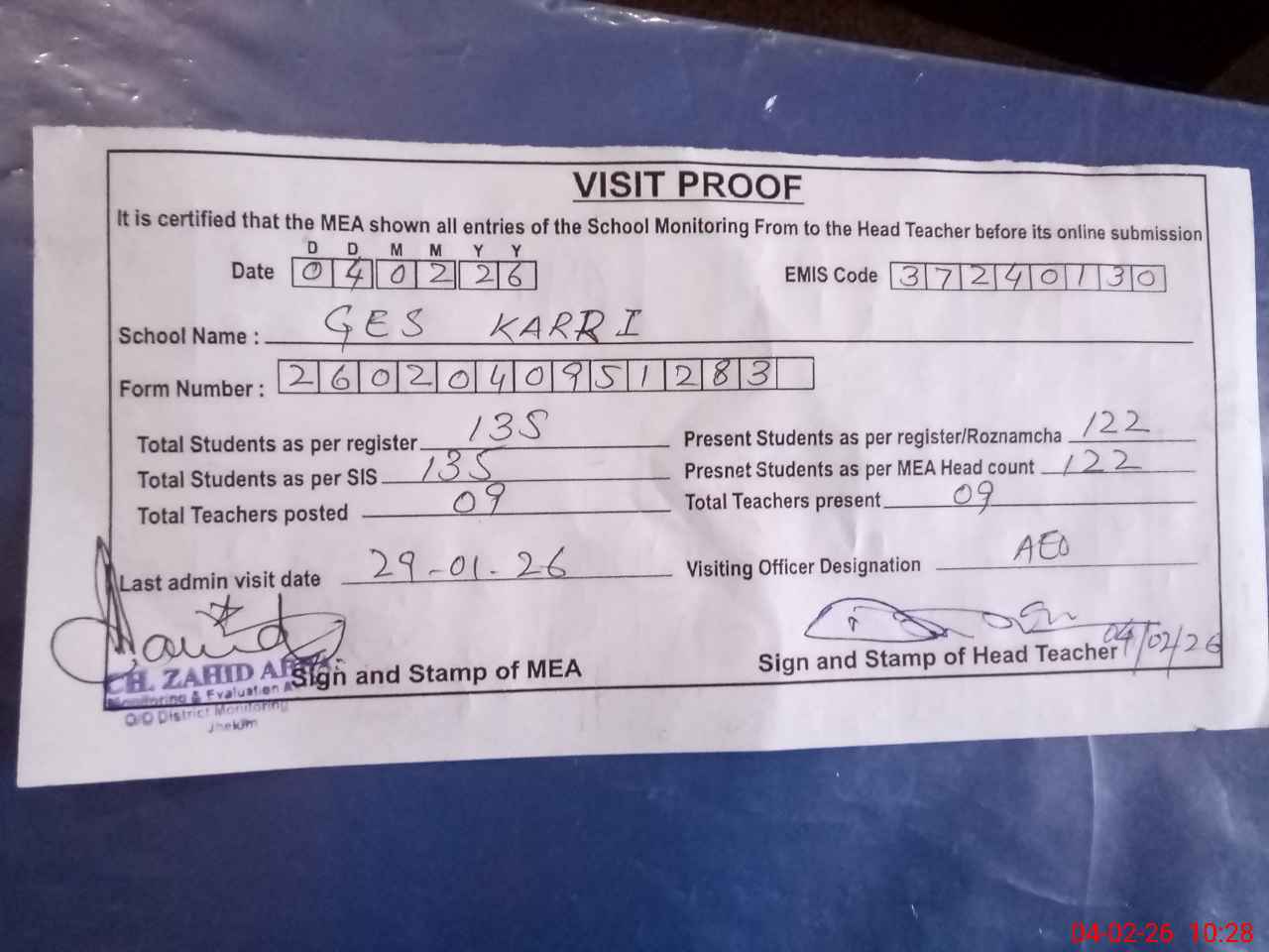 | EMIS Code: 37240130 | Name of School: GES KARRI | |||