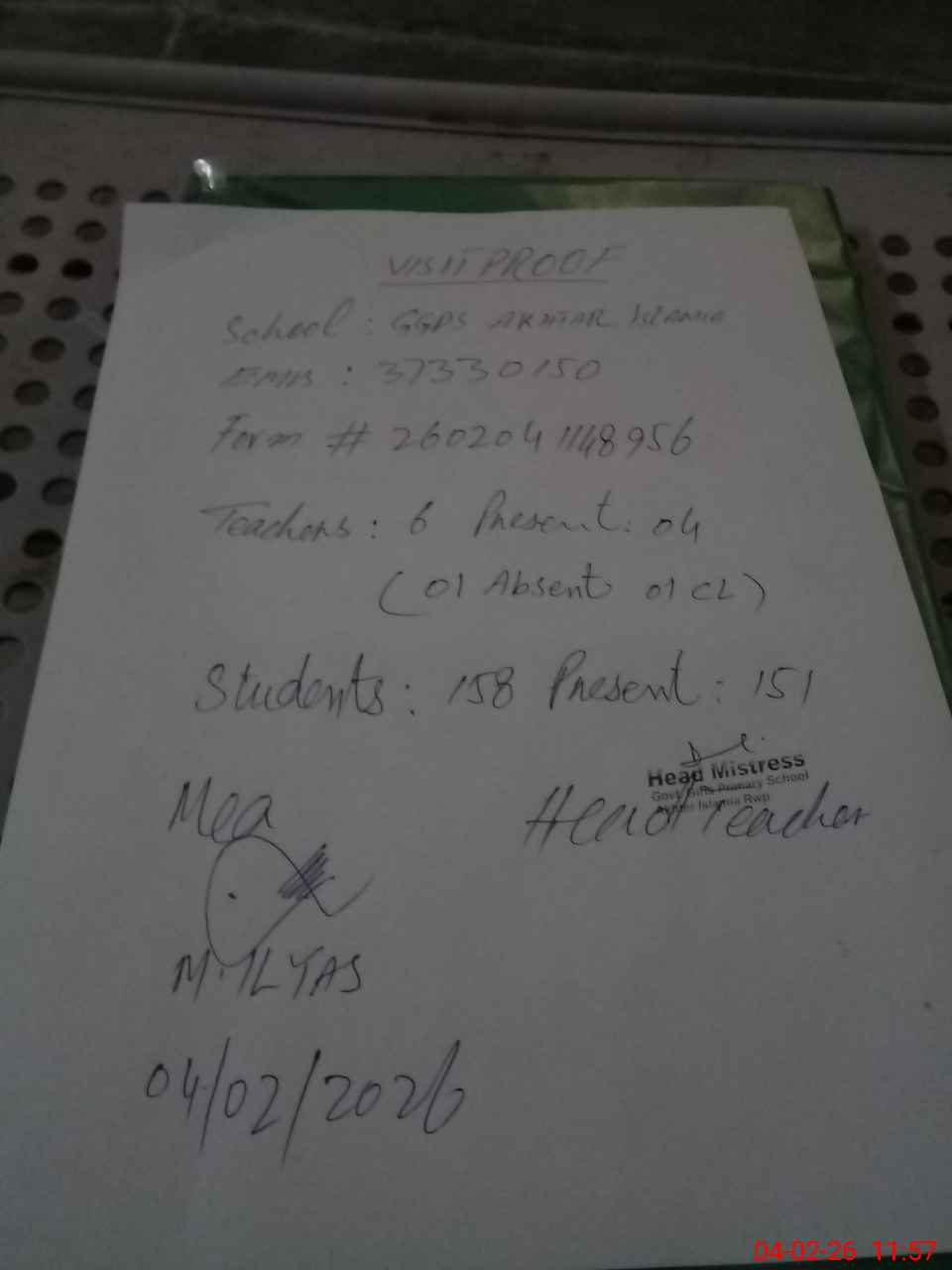 | EMIS Code: 37330150 | Name of School: GGPS AKHTAR ISLAMIA | |||
