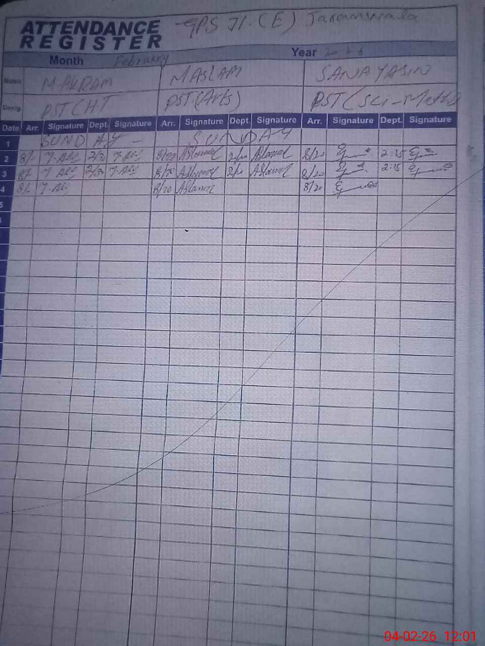 | Name: MU**** AK**** Designation: (School Headmaster's/Headmistress's) PST Phone/Cell Number: 03**** |