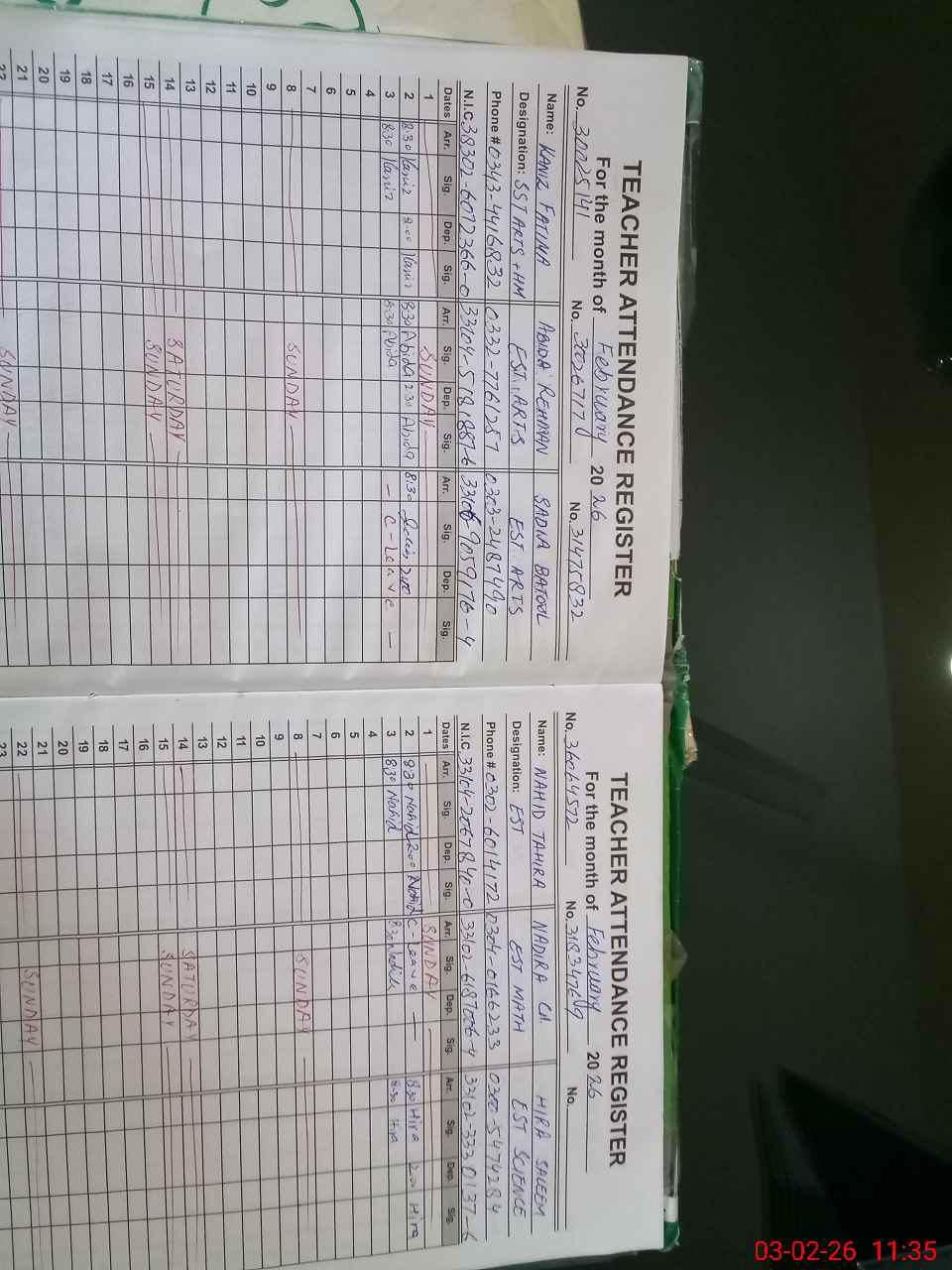 | Name: KA**** FA**** Designation: (School Headmaster's/Headmistress's) S.S.T.(ARTS) Phone/Cell Number: 03**** |