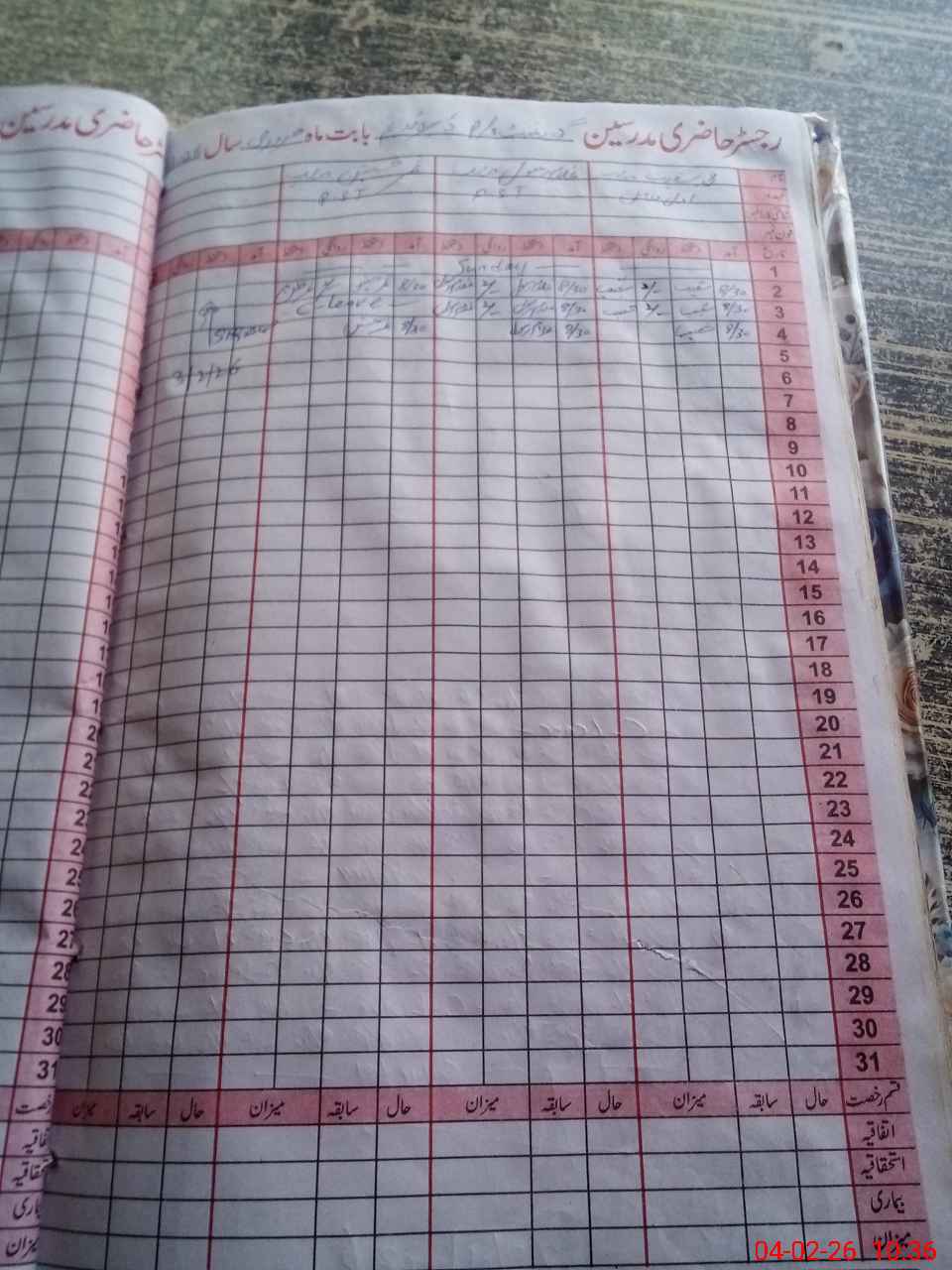 | CNIC | Full Name | Designation | R/C | Absence During Last Calender Month |
