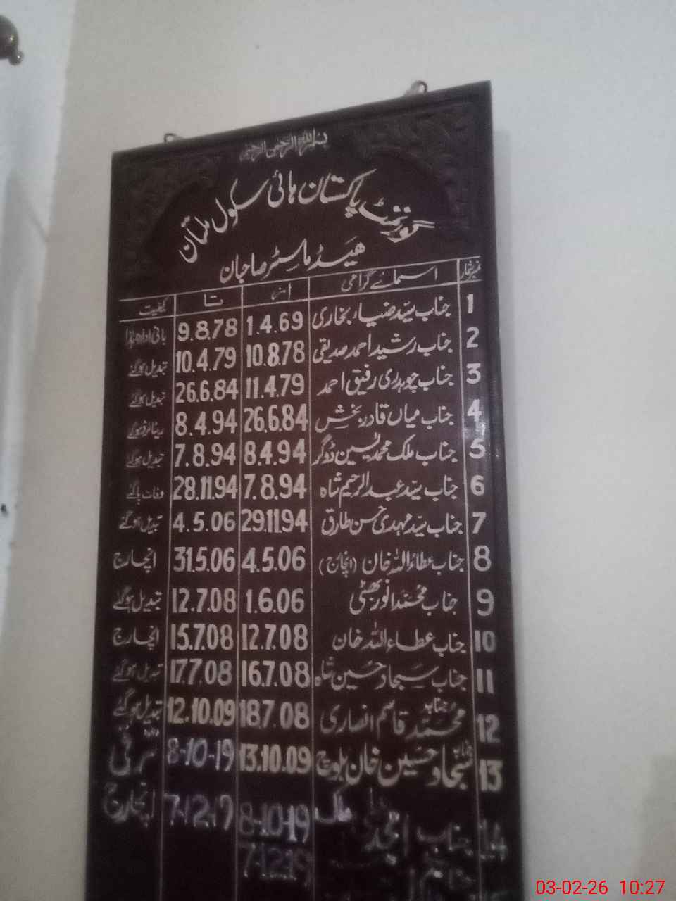 | District: MULTAN | Tehsil: MULTAN CITY | Markaz: SECONDARY-WING | Level: High | |