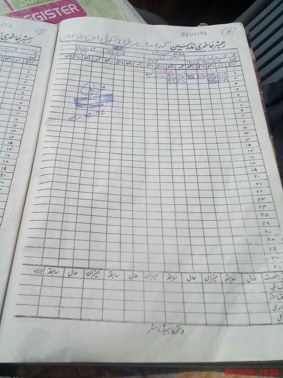 | Name: Zu**** Ha**** Designation: (School Headmaster's/Headmistress's) PST Phone/Cell Number: 03**** |
