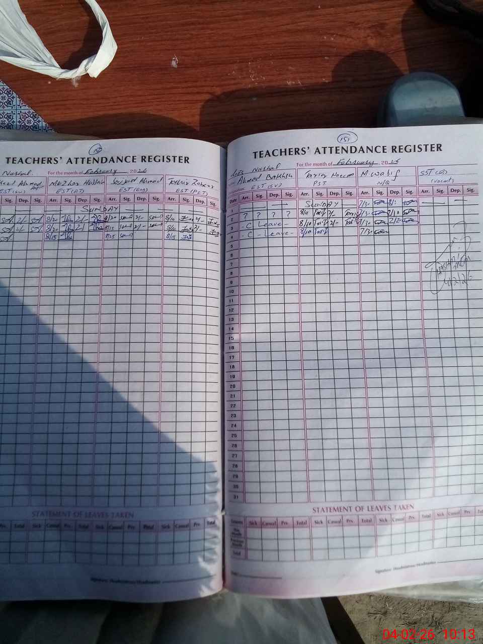| Leave | Duty | Absent | Maternity | Medical | Ex- Pak |
