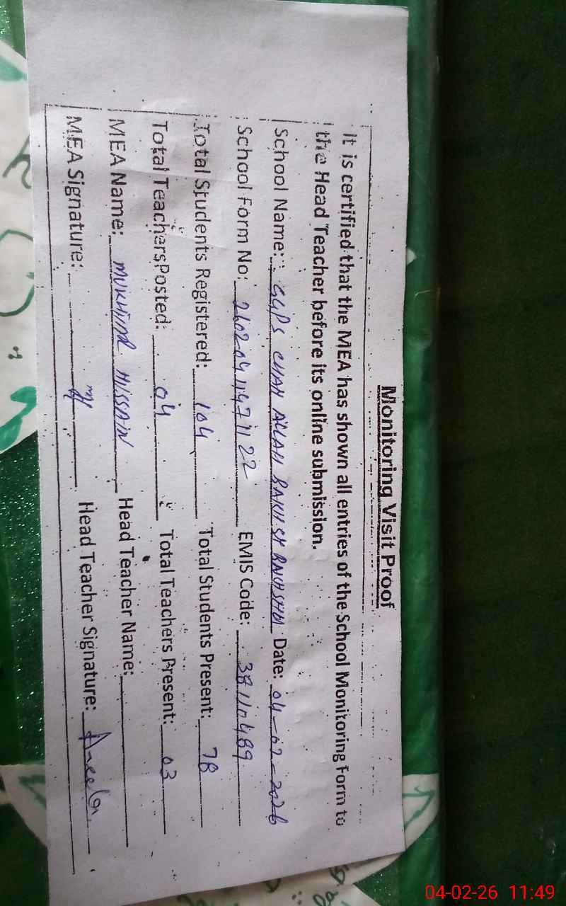 | EMIS Code: 38110489 | Name of School: GGPS CHAH ALLAH BAKHSH BASKHSHU WALA | |||
