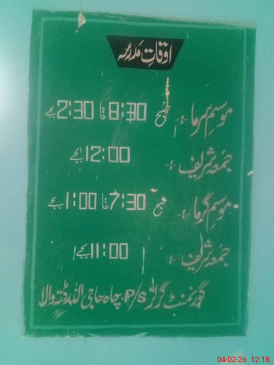 | EMIS Code: 38140711 | Name of School: GGPS CHAH ALLAH DITTA | |||