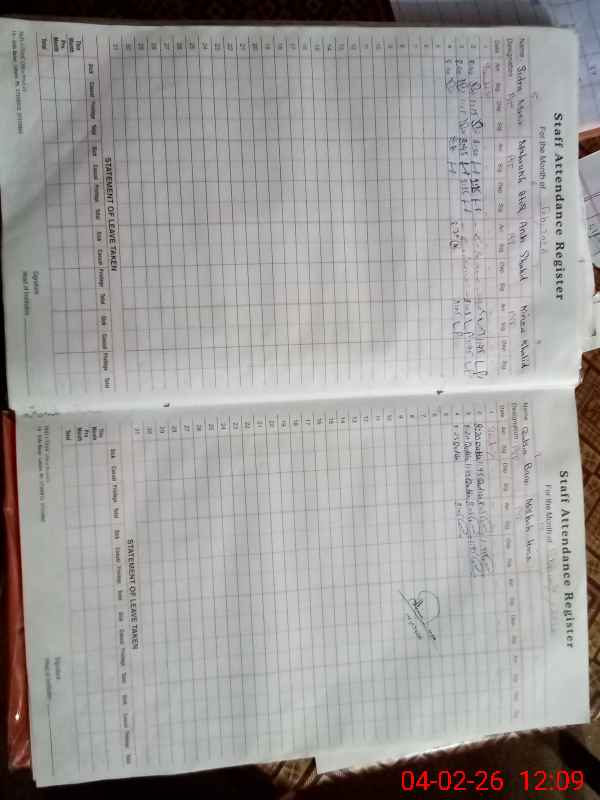 | Attendance Register | Head Teacher | MEA with School | Visit Proof |