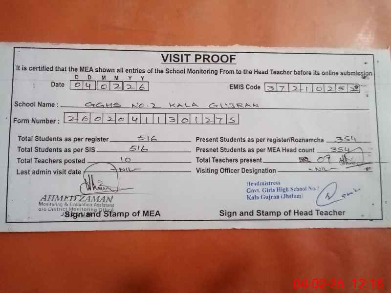 | EMIS Code: 37210252 | Name of School: GGHS NO. 2 KALA GUJRAN | |||